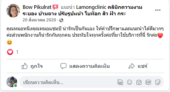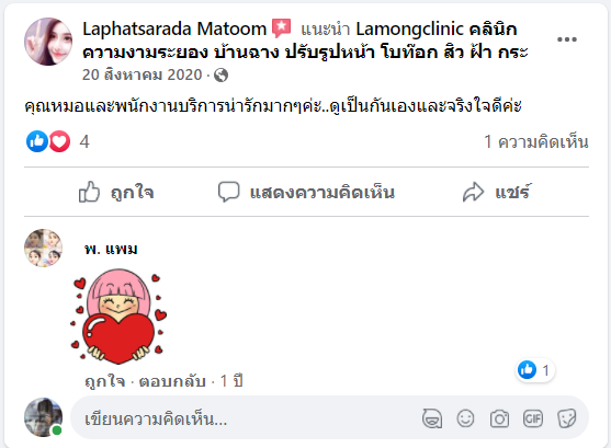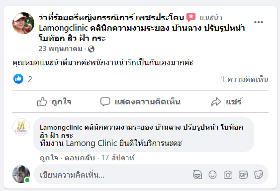 สามารถอ่านคำติชมเพิ่มเติมได้ที่เพจ Lamong Clinic