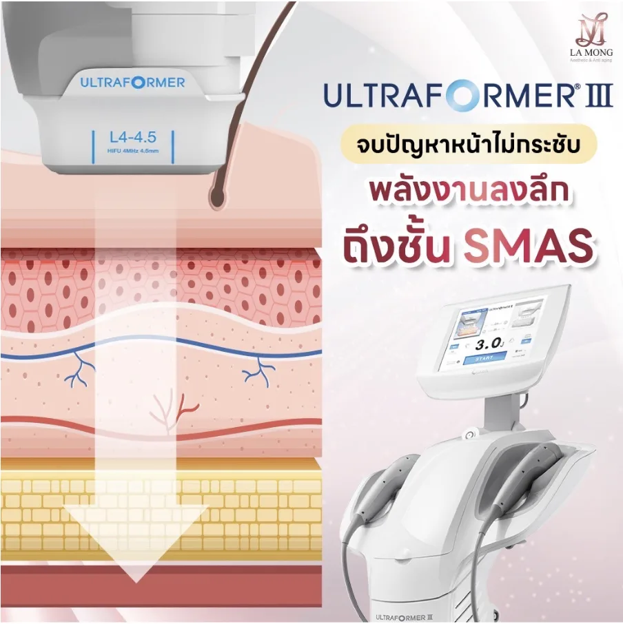 Ultraformer III (อัลตร้าฟอร์มเมอร์ ทรี) เทคโนโลยีกระชับผิวหน้าและสลายไขมันใต้ชั้นผิว ของร่างกายได้ในเครื่องเดียว ซึ่งเป็นนวัตกรรมใหม่ล่าสุด ในวงการแพทย์ผิวหนัง เพื่อใช้ในการยกกระชับผิวหย่อนคล้อย ให้ตึงขึ้นและมีความปลอดภัยสูงเป็นที่ยอมรับ ถึงประสิทธิภาพในการรักษาเป็นอย่างมาก